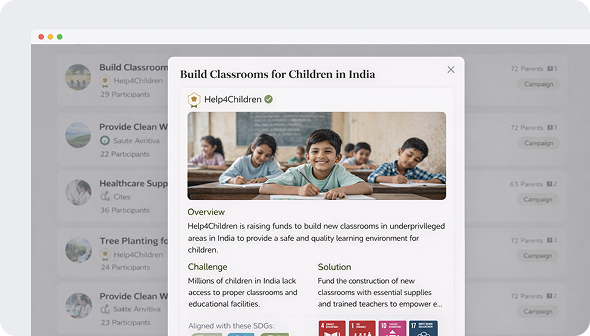 Each Bike4Good initiative is linked to a selected nonprofit partner and clearly defined fundraising goal. Employees rally behind one shared cause — creating collective focus and visible impact.