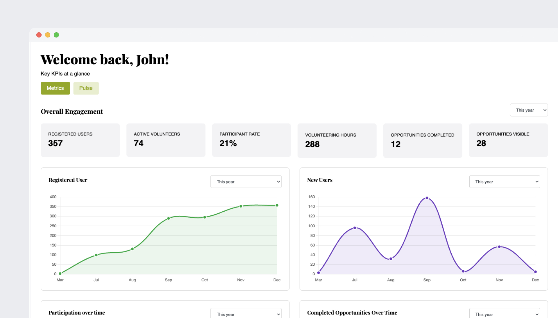 Create more rewarding volunteer experiences with smart, actionable feedback, metrics, and insights at your fingertips.